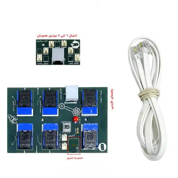 - ویژگی: قابلیت اتصال به 6 موتور، وجود پایه جک آداپتور، راهنمای فارسی بر روی برد